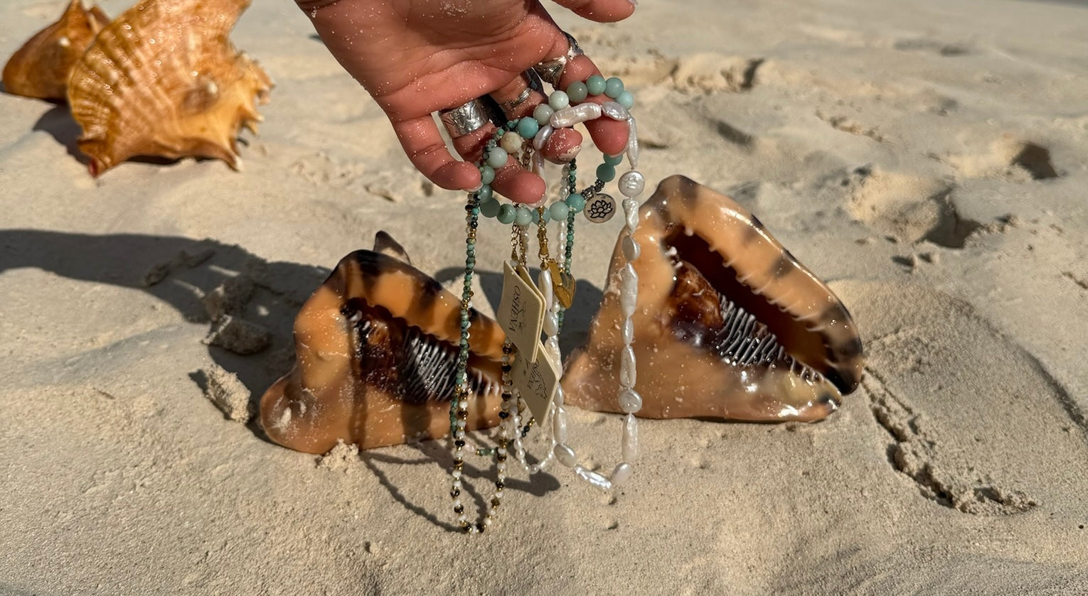 Soft hues and delicate charms that capture the spirit of the coast in every piece.