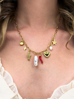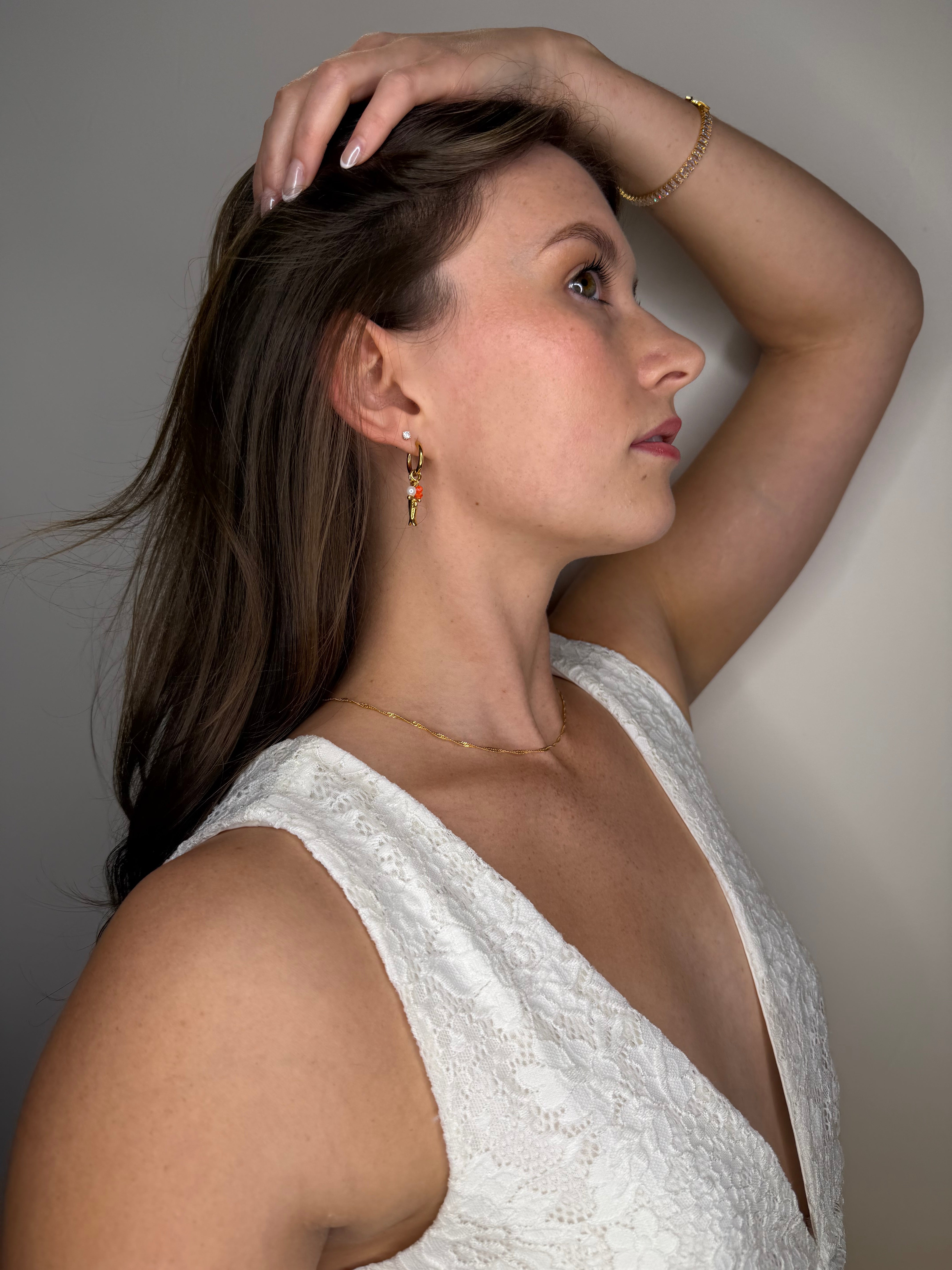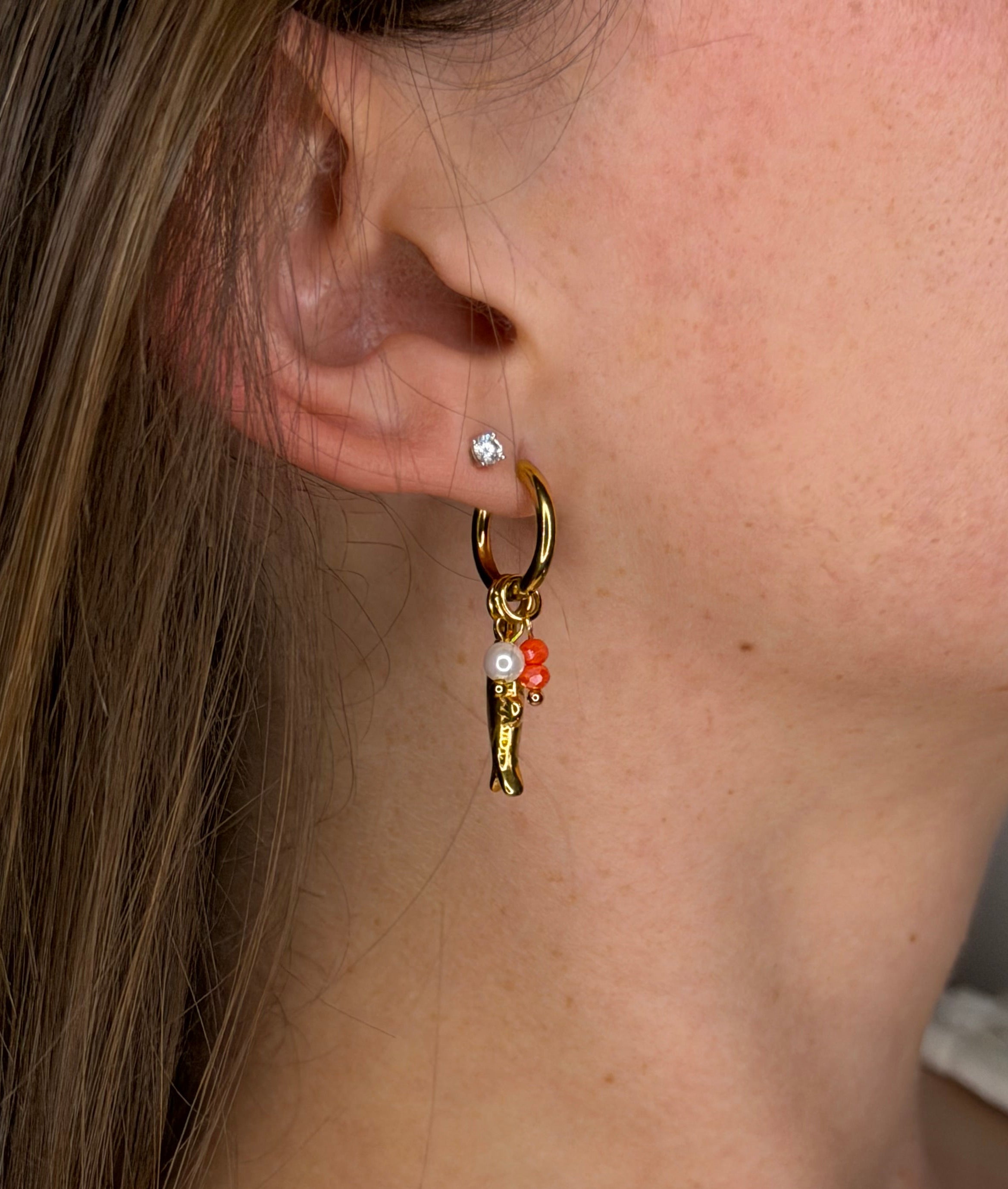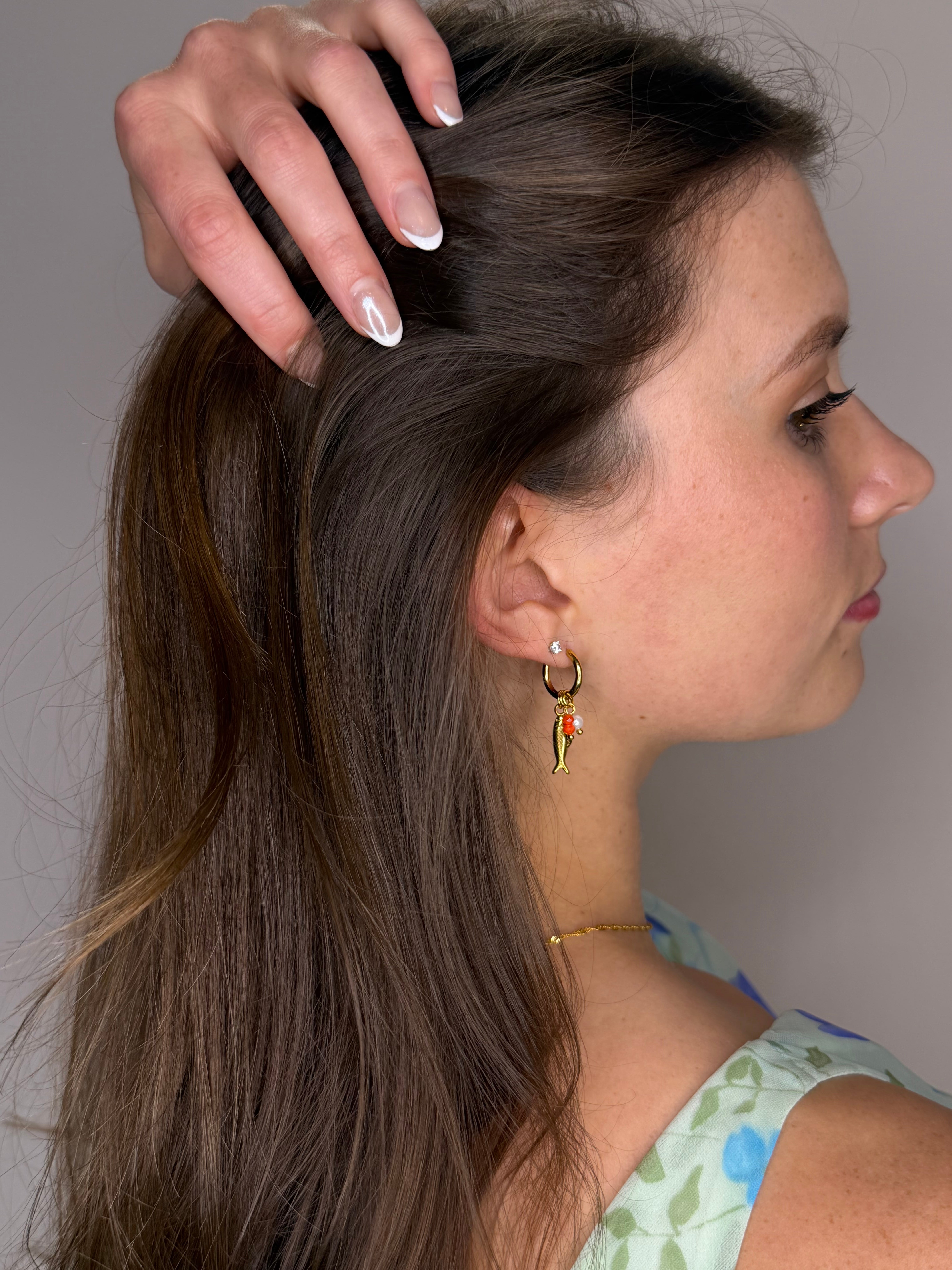 Divertidos y sofisticados, los pendientes Marina Charm Hoop aportan un toque de elegancia costera a tu look. Con un delicado aro adornado con colgantes —como una perla, una cuenta inspirada en el coral y un original colgante de pez—, estos pendientes capturan el espíritu despreocupado de los días de playa con un estilo refinado.